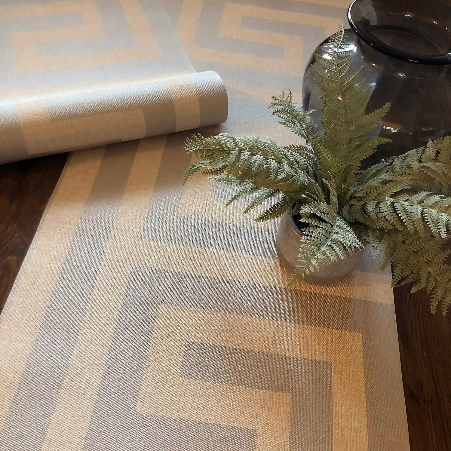 Striking Large scale Greek key pattern on a luxury fabric effect background. Dramatic pattern repeat. Luxury Italian heavyweight vinyl wallcovering