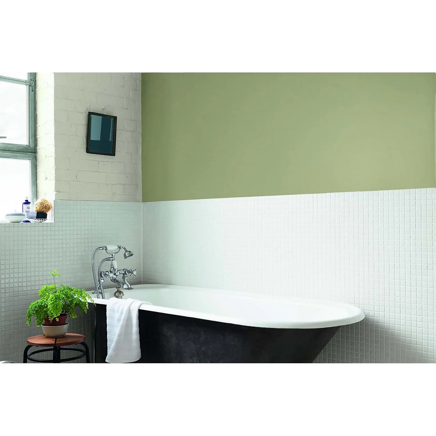 Overtly Olive is a muted olive green which captures the warm leafy tones of nature and brings the outside in. Choose this shade if you have a light space and would like to create a restful room where you can unwind and relax.