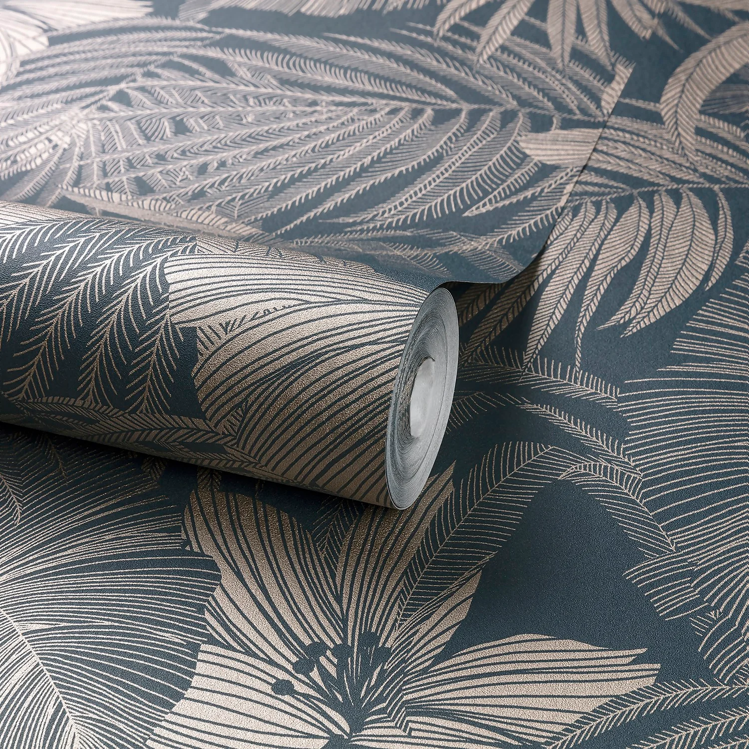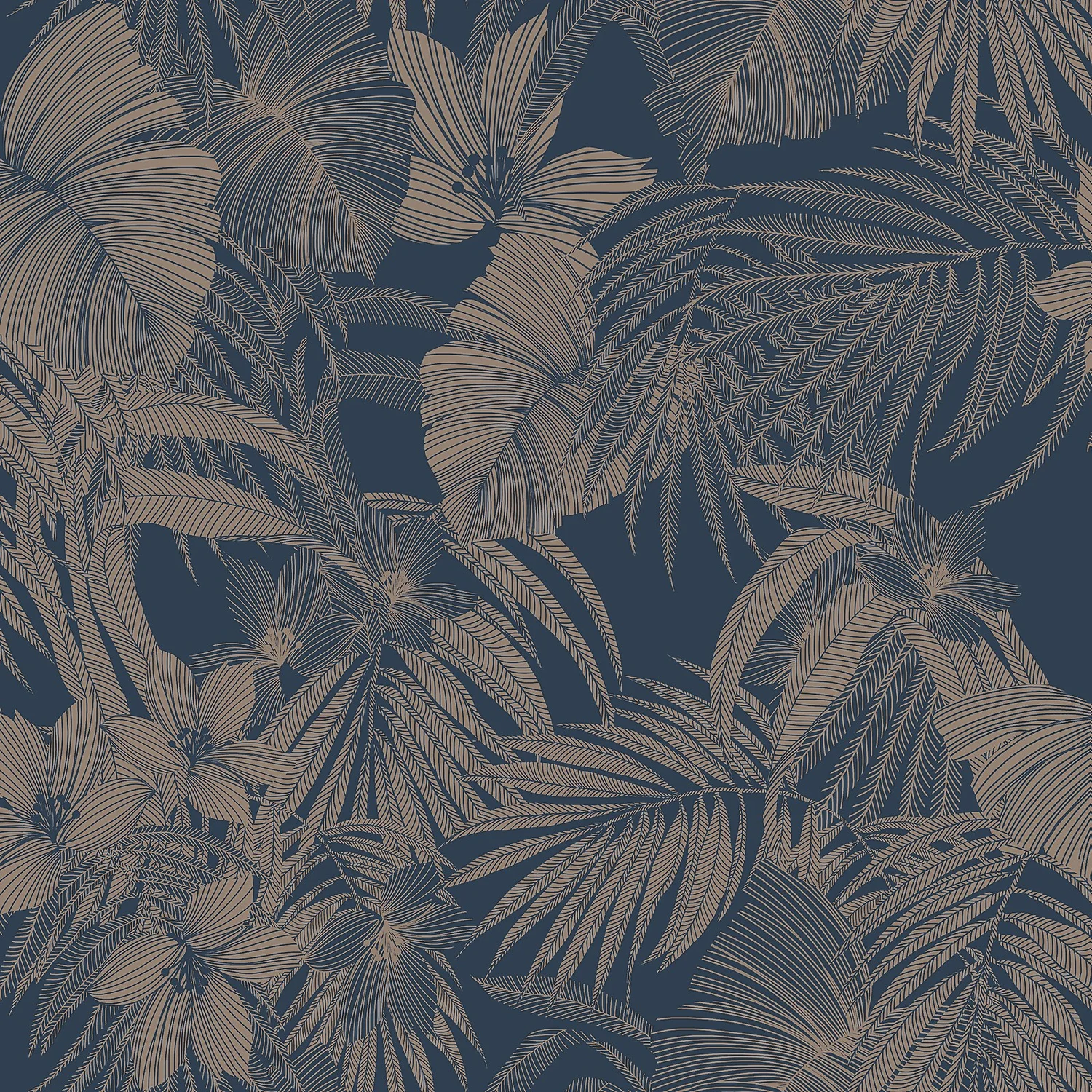 Joelle Navy is the perfect wallpaper to add drama and luxury to your room. The bold navy background lifts the shiny silver tropical leaves and flowers created in fine linework. Use as a feature wall or use this on all four walls to get the most out of this deep, striking product.
