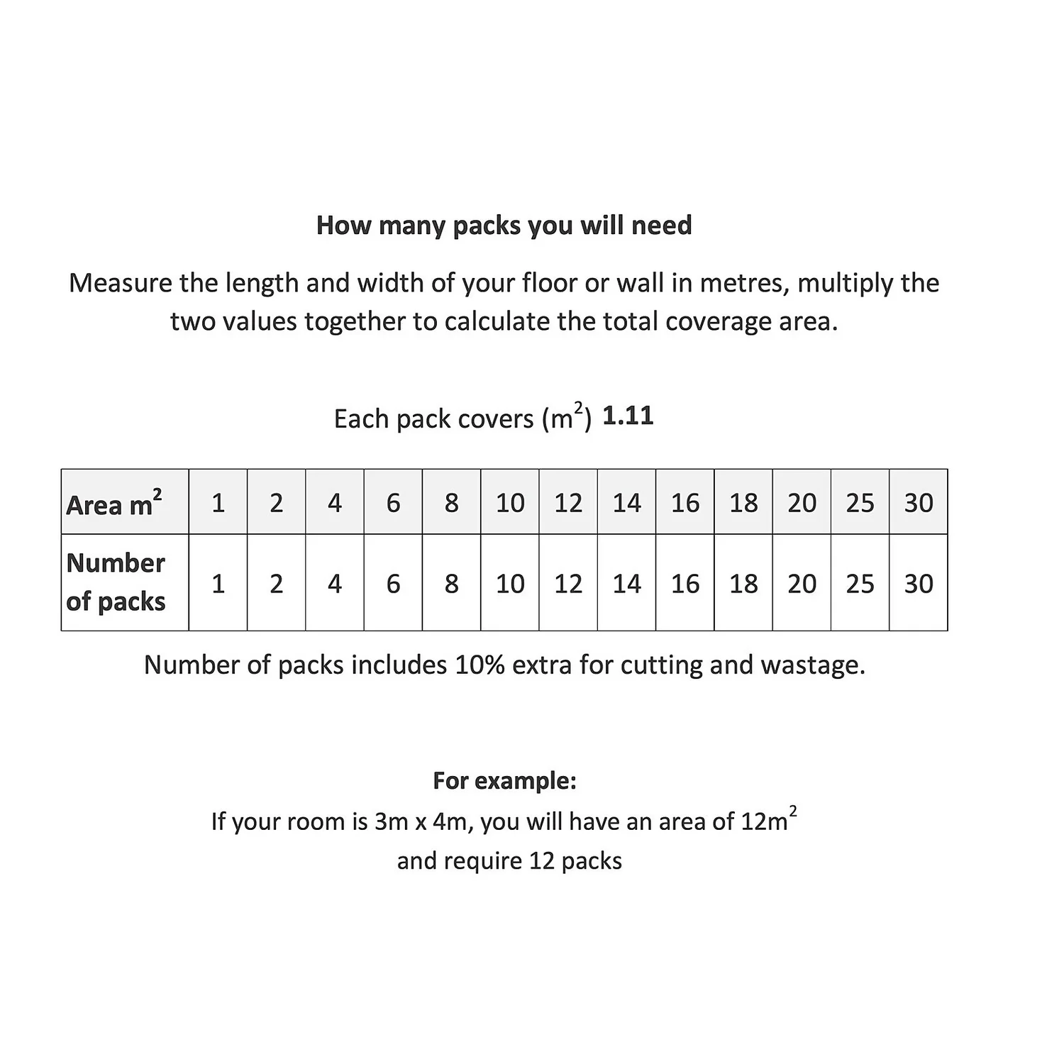 Slip and water resistant, these Flooring Tiles are suitable for installation on most indoor surfaces including concrete, timber, and ceramic tiles. Each Tile is 2mm thick, 152.4 x 914.4mm and comes in a pack of 8 which covers 1.11m².